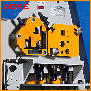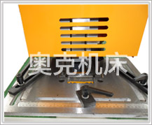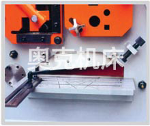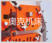 | 圆钢,方钢剪切部位具有多个不同尺寸的孔,可调的压料装置便于剪切各种尺寸的型钢、槽钢及工字形钢,刀片可供选择。 | 菱形刀片确保高质量的剪切即:更小变形和剪切材料的损失,从顶端和底部可作45度剪切。 |